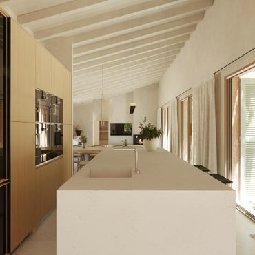 This exceptional turnkey project presents a unique contemporary villa that beautifully blends modern Mediterranean architecture with the warm tones and textures of Mallorca’s landscape. Clean geometric lines, terracotta façades, and natural stone walls come together to create a timeless design that feels both elegant and rooted in its surroundings.